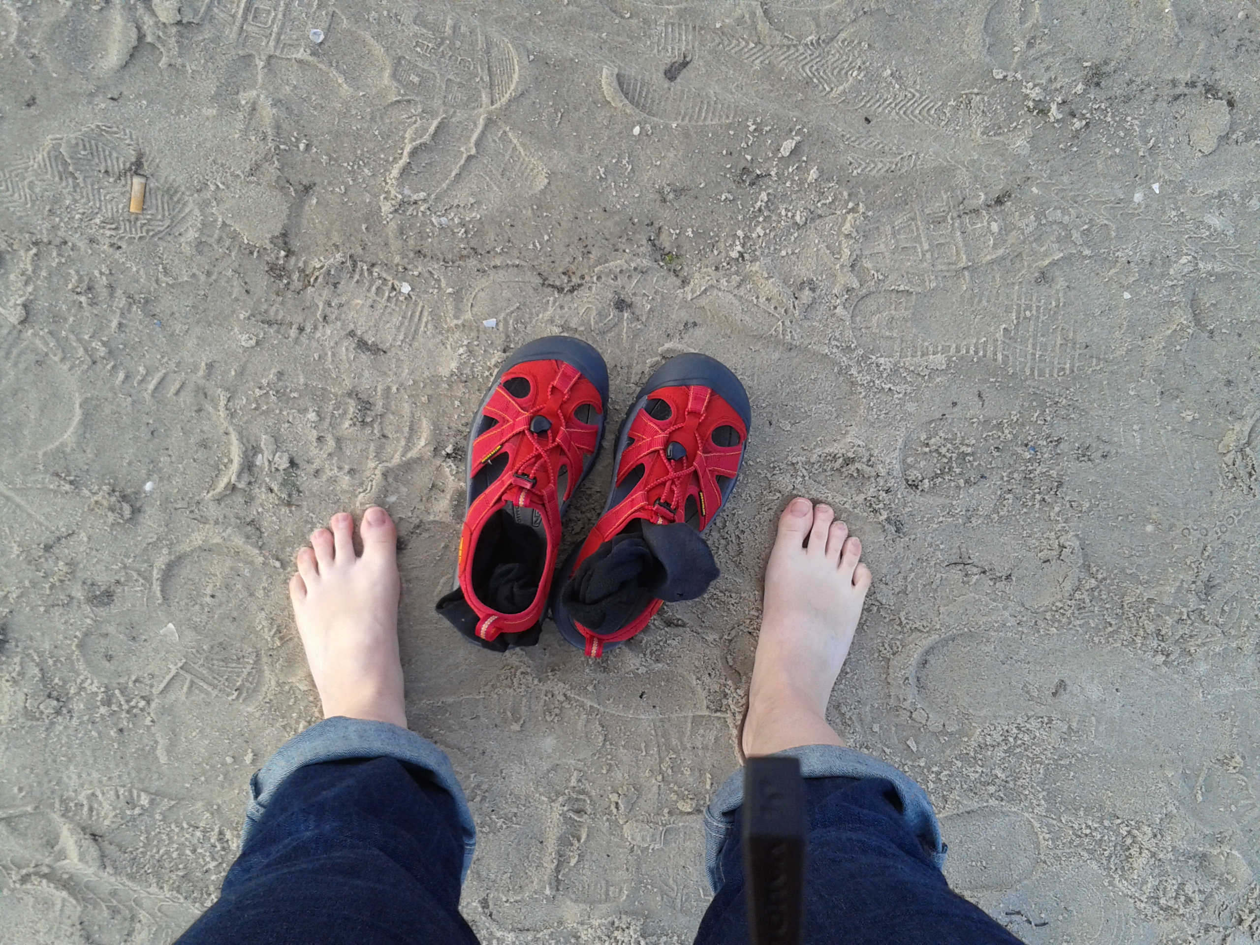 Click click click with the heels of my ruby sandals and I am off. Suddenly standing on the beach. Close to sunset, wide blue sky, only a few people are walking along the shore. I take off my magic slippers and touch the cool sand with my bare toes. Then dig my feet in.